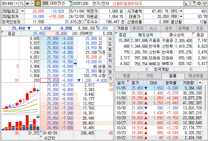 - 증권사 목표가 상향: 2025년 10월 31일, 하나증권은 대한전선에 대해 "4분기부터 증익 사이클 본격 시작"이라며 목표가를 25,000원으로 상향 조정했습니다. 이는 고부가가치 제품 수요 증가와 해저케이블 사업 등 미래 성장 동력에 대한 기대감이 반영된 것으로 풀이됩니다.