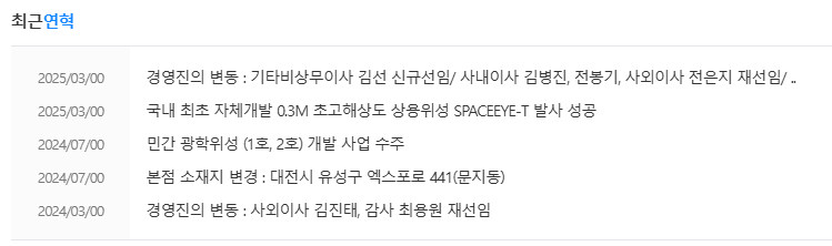 | 주요 성장 동력 | 독자 위성 'SpaceEye-T' 발사 및 이를 활용한 유럽향 위성 임대 계약 체결 (자회사 SIIS 실적 턴어라운드 핵심) |