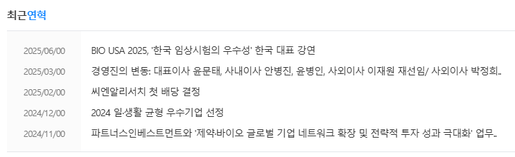 씨엔알리서치는 국내 CRO 시장의 선두 주자로서 꾸준한 관심을 받고 있습니다. 2025년 11월을 기준으로 주목할 만한 최근 뉴스와 이슈는 다음과 같습니다.