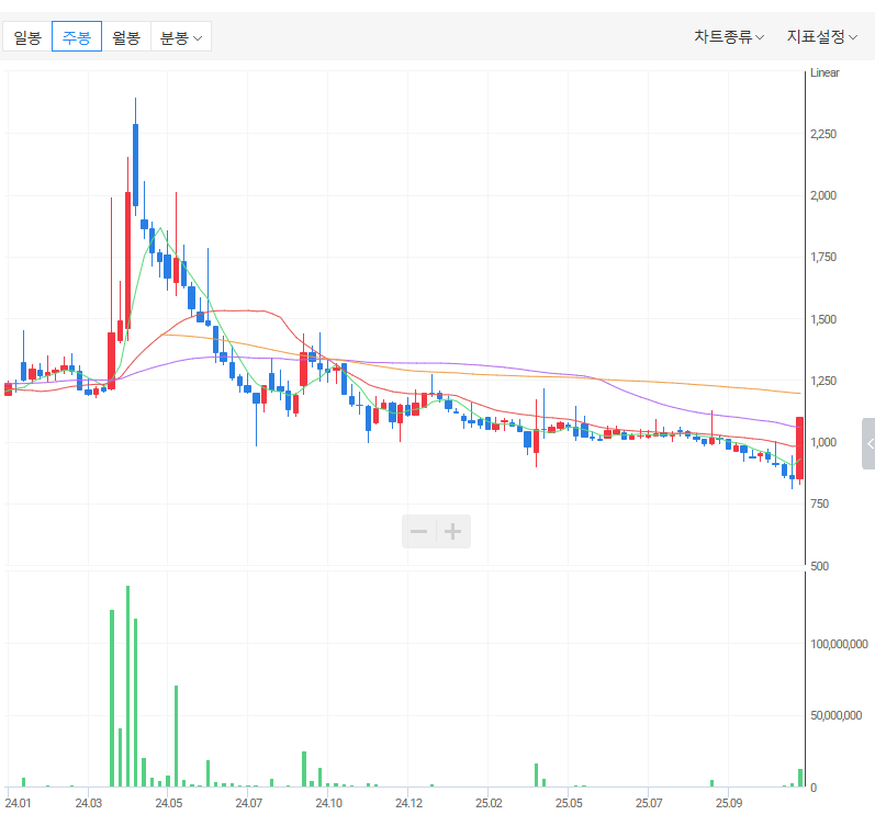 씨엔알리서치 주봉 시세 차트
