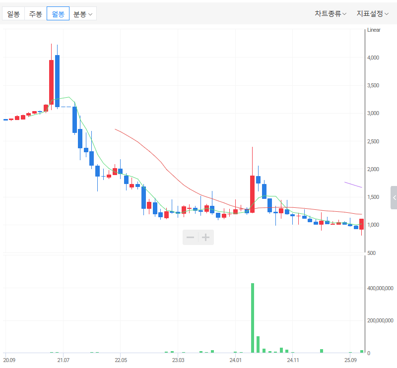 씨엔알리서치 월봉 시세 차트