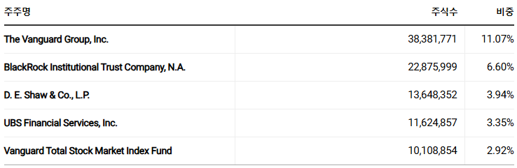 D. E. Shaw & Co., L.P. 약 3.94% 13,648,352