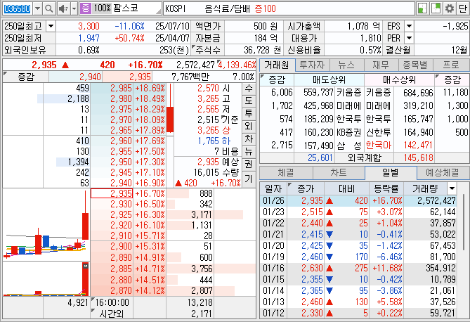 - 종목코드: 036580 (코스피)