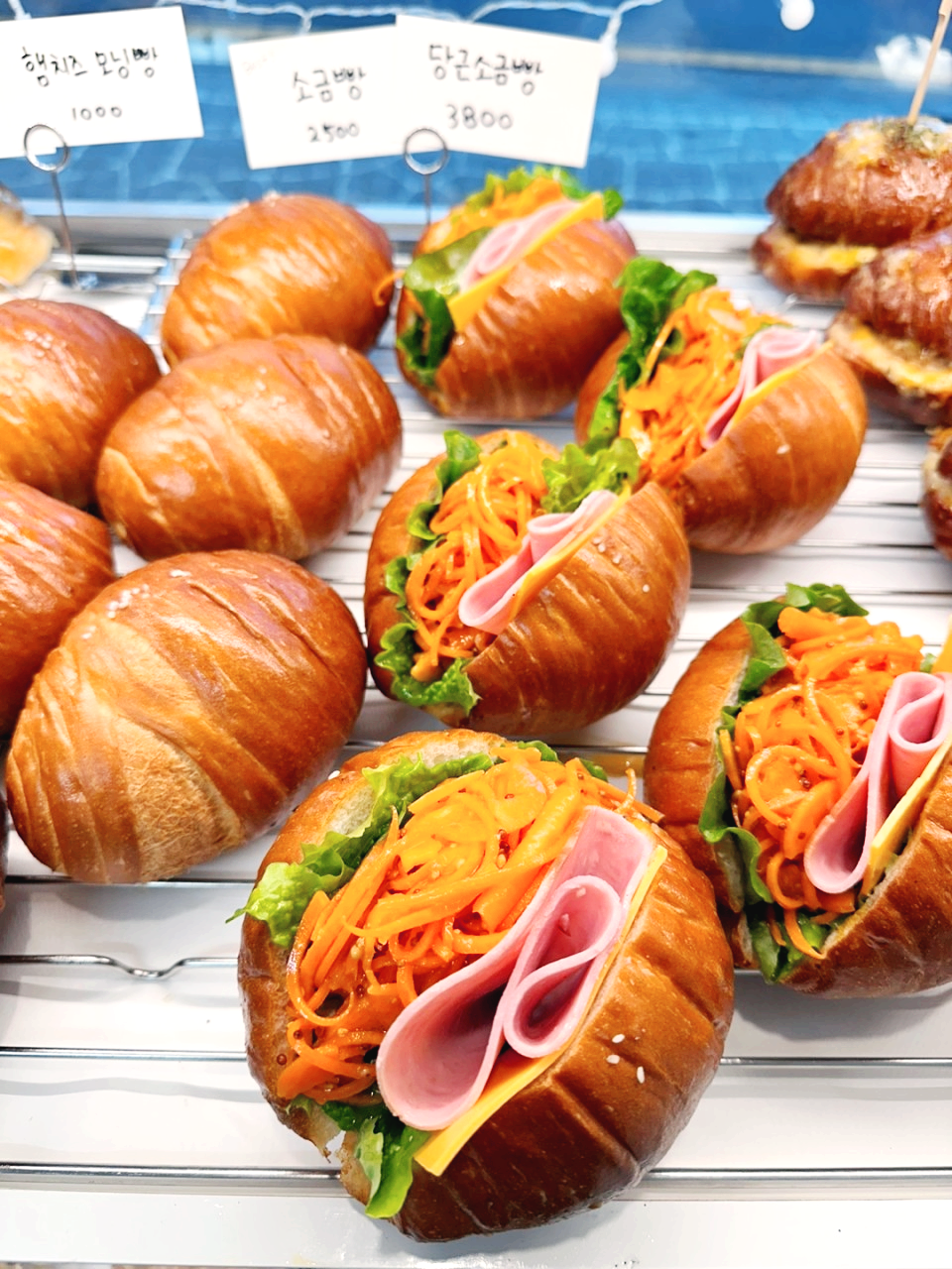 - 특징: 소금빵 속에 톡톡 터지는 명란과 부드러운 마요네즈 소스를 듬뿍 채웠습니다. 명란 특유의 비린 맛을 완벽하게 잡아내어 중독성이 매우 강합니다.