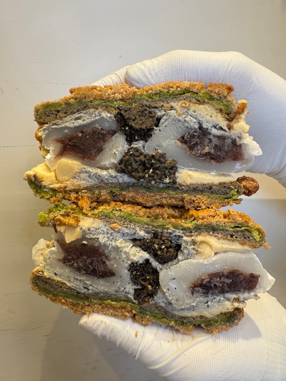 인절미맘모스가 고소함의 대명사라면, 녹차맘모스는 깔끔하고 향긋한 풍미가 특징입니다. 제주산 녹차 가루가 배합된 반죽과 크림은 자칫 느끼할 수 있는 맘모스 빵의 뒷맛을 깔끔하게 잡아줍니다. 일반적인 단맛 위주의 빵이 아니라 향 중심의 빵을 찾는 분들에게 적합합니다.