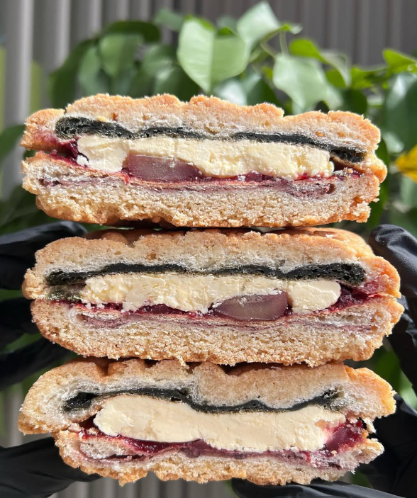 행복밀을 전국구 빵집으로 만든 일등 공신입니다. 일반적인 맘모스 빵이 잼과 크림의 단맛에 치중한다면, 이곳의 인절미맘모스는 고소함의 극치를 달립니다. 묵직한 빵 사이로 쫀득한 떡과 고소한 인절미 크림, 그리고 팥앙금이 층층이 쌓여 있어 한 입 베어 무는 순간 입안 가득 행복이 퍼집니다. 제주 빵지순례 중 “하나만 산다면?”이라는 질문에 가장 많이 추천되는 메뉴입니다.