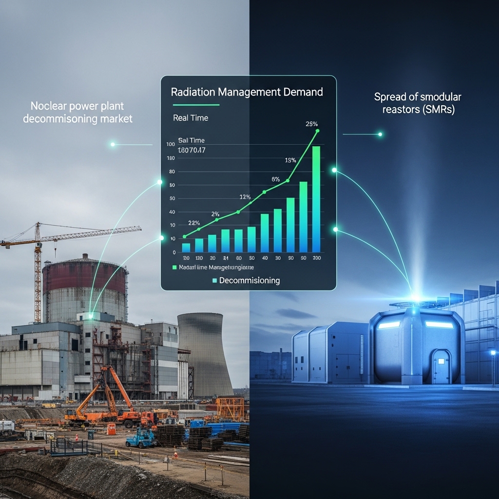 • 핵심 이슈: 원전 해체 시장 선점 및 SMR(소형모듈원자로) 확산에 따른 방사선 관리 수요 급증.