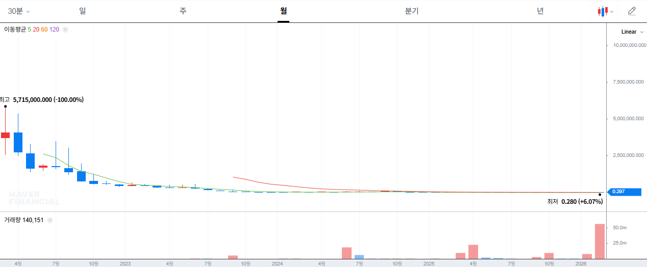 가장 우려되는 부분은 주가가 1달러 미만으로 장기간 지속될 때 발생하는 나스닥 퇴출 압박입니다.