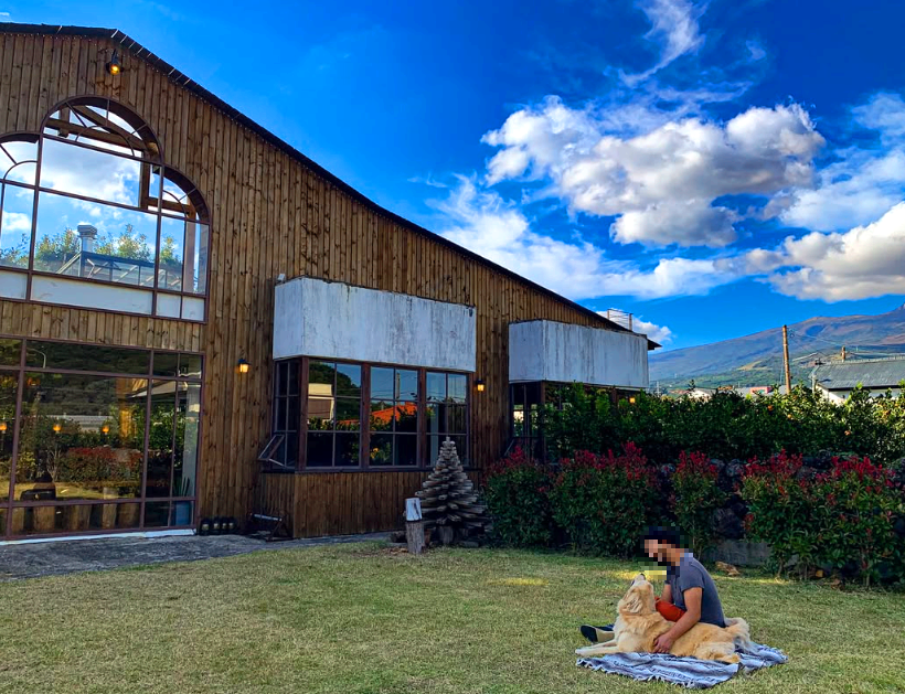 내비게이션에 '제주 서귀포시 하신상로 417'을 검색하고 한적한 길을 따라 여유롭게 드라이브를 즐기다 보면, 어느새 웅장한 제주의 대자연 속에 포근하게 자리 잡은 통나무집 하나가 눈에 들어옵니다. 번잡한 관광지가 아니라 한적하고 조용한 동네에 위치해 있어서 찾아가는 길 내내 마음이 차분해지는 기분이 들었습니다.