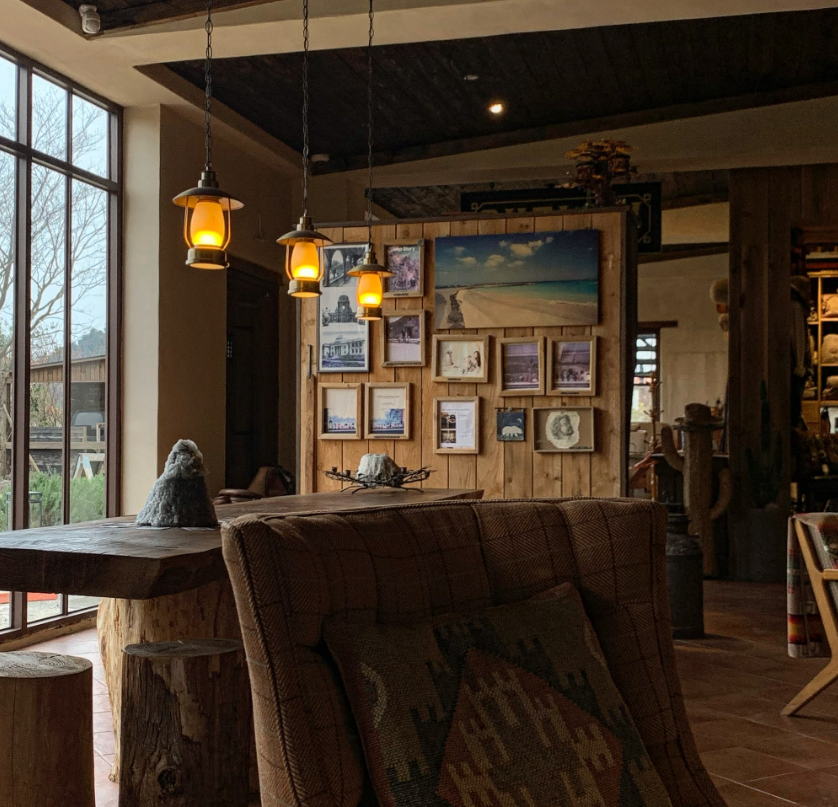 훅 하고 느껴지는 훈훈한 공기와 함께 은은하게 코끝을 맴도는 타는 장작의 냄새, 그리고 묵직한 나무 인테리어가 주는 압도적인 아늑함이 저를 감싸 안았습니다. 친봉산장의 내부는 층고가 높아 답답함이 전혀 없었고, 곳곳에 배치된 빈티지한 소품들과 가죽 소파, 그리고 투박하지만 멋스러운 나무 테이블들이 어우러져 정말 따뜻하고 포근한 외국의 어느 산장에 온 듯한 착각을 불러일으켰습니다.