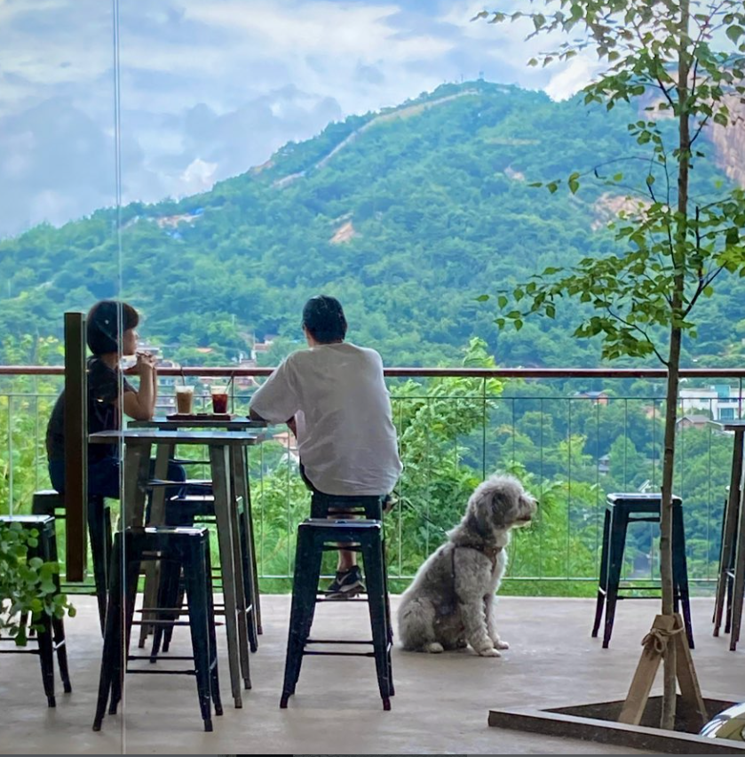 마지막으로 이곳은 반려동물 동반이 가능한 카페입니다. 제가 방문했을 때도 보호자와 함께 얌전히 앉아 인왕산을 바라보고 있는 귀여운 강아지를 볼 수 있었는데, 그 모습조차도 이 공간의 평화로운 분위기와 너무나 잘 어울려 미소가 지어졌습니다. 반려견과 함께 산책을 나왔다가 뷰가 좋은 곳에서 잠시 쉬어가고 싶은 분들에게도 아주 굿 초이스라 여겨 집니다.