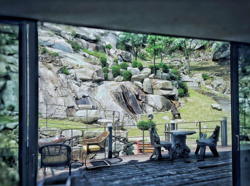 하지만 이곳의 진짜 하이라이트는 역시 야외 공간입니다. 커다란 자연 암반을 깎아내거나 훼손하지 않고 그 지형을 그대로 살려 데크를 깔고 좌석을 마련한 점이 무척 인상적이었습니다. 나무 계단과 산책로를 따라 오르내리며 구경하는 재미가 쏠쏠한데, 야외 테이블은 어느 방향, 어느 층수에 자리를 잡느냐에 따라 눈에 담기는 시야와 풍경이 완전히 달라집니다.