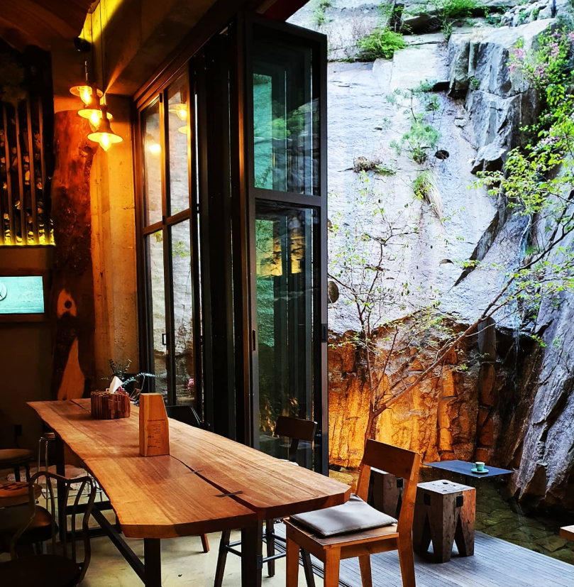 어떤 자리에서는 울창한 숲이 손에 닿을 듯 가깝고, 계단을 따라 루프탑 테라스로 올라가면 저 멀리 산등성이와 시원하게 열린 하늘이 가슴을 뻥 뚫리게 만들어 줍니다. 방문할 때마다 새로운 자리에 앉아 각기 다른 풍경을 마주하는 즐거움을 누릴 수 있는 곳입니다.