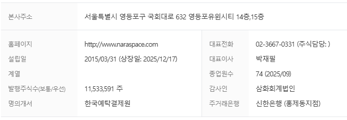 나라스페이스테크놀로지 주가 및 기업 분석