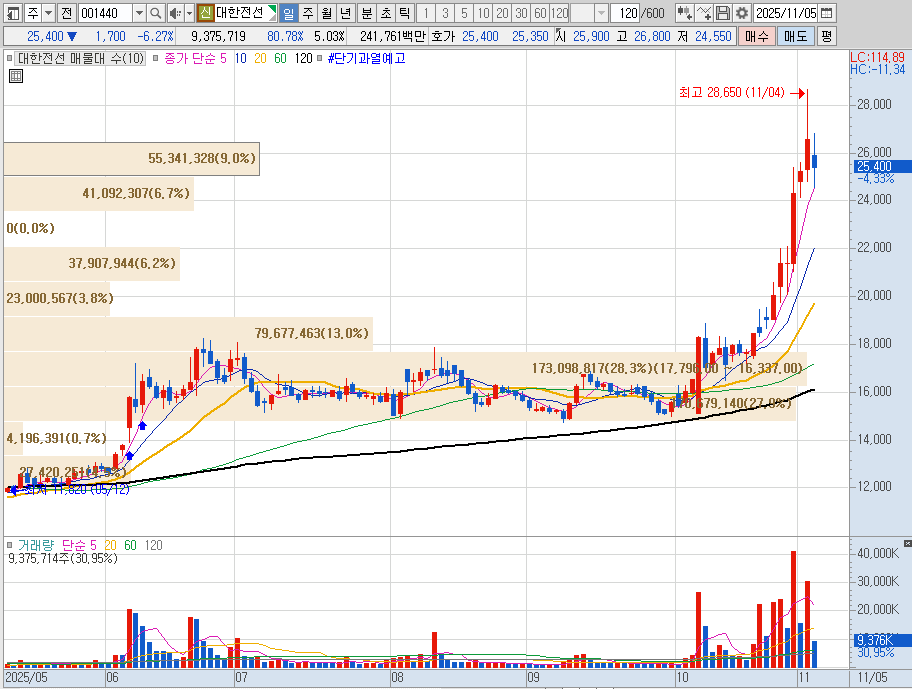 - 증권사 목표가 상향: 2025년 10월 31일, 하나증권은 대한전선에 대해 "4분기부터 증익 사이클 본격 시작"이라며 목표가를 25,000원으로 상향 조정했습니다. 이는 고부가가치 제품 수요 증가와 해저케이블 사업 등 미래 성장 동력에 대한 기대감이 반영된 것으로 풀이됩니다.