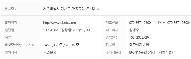 • 로봇 부품 (Dynamixel): 매출의 약 60% 이상을 차지하며, 전 세계 로봇 연구/교육 시장 및 산업용 시제품 시장에 공급되는 고성능 액추에이터입니다. 이는 안정적인 캐시카우 역할을 합니다.
