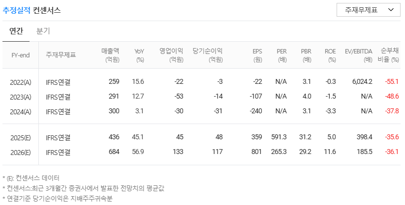 다만 — 별도 기준 2024년 결산에서는 EPS가 마이너스를 기록해 PER이 산출되지 않았습니다.