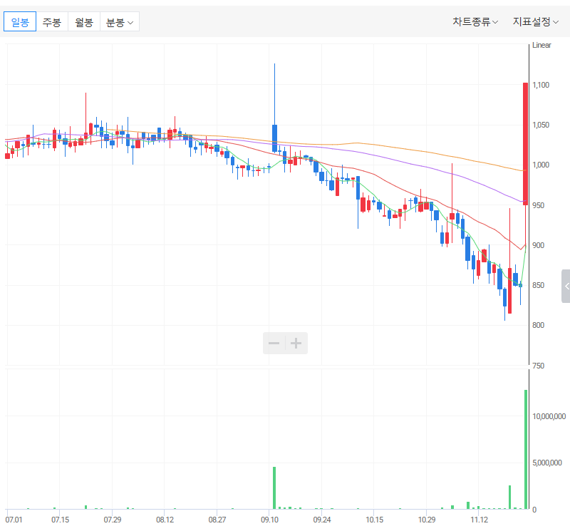 씨엔알리서치 일봉 시세 차트