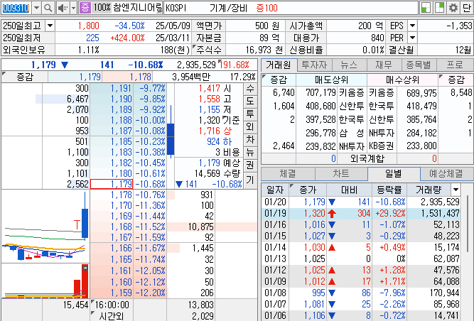 참엔지니어링 일봉 시세 차트 2026.01.20
