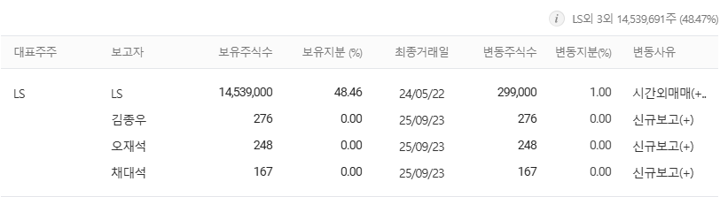 | (주)LS 및 특수관계인 | 약 48.46% |