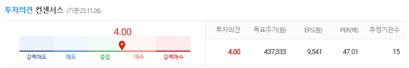 - 밸류에이션 부담 완화 가능성: 현재 PER(주가수익비율)이 50배 이상으로 다소 높게 형성되어 있으나, 향후 폭발적인 순이익 증가가 예상된다면 성장성에 기반한 밸류에이션 부담은 점차 완화될 수 있습니다.